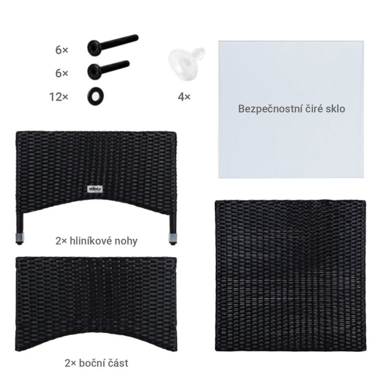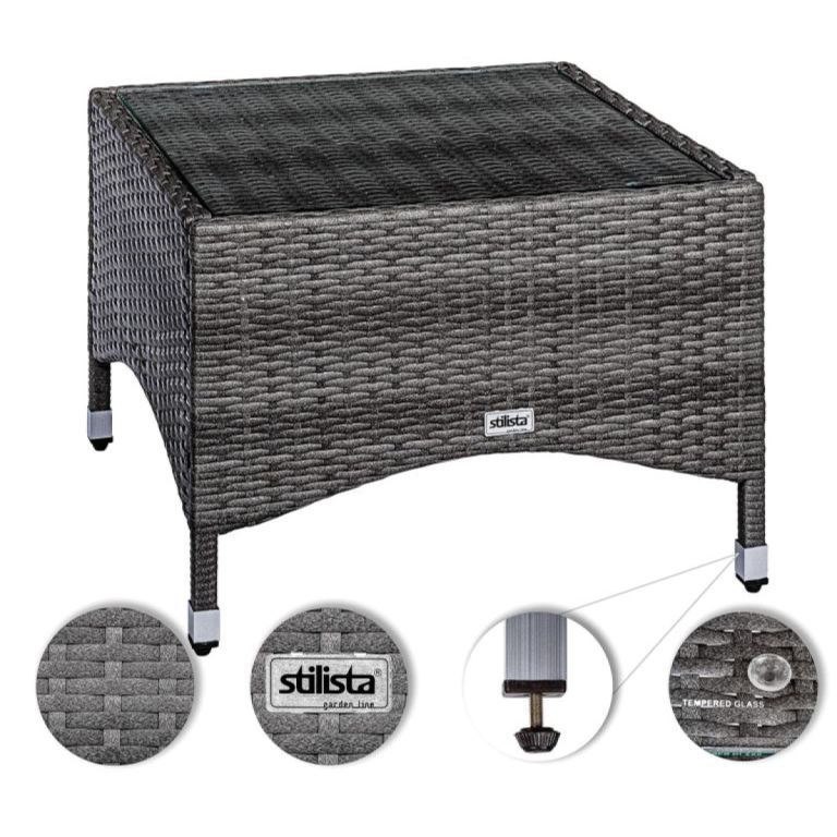 STILISTA odkladací stolík, 58 x 58 cm, polyratan, čierny