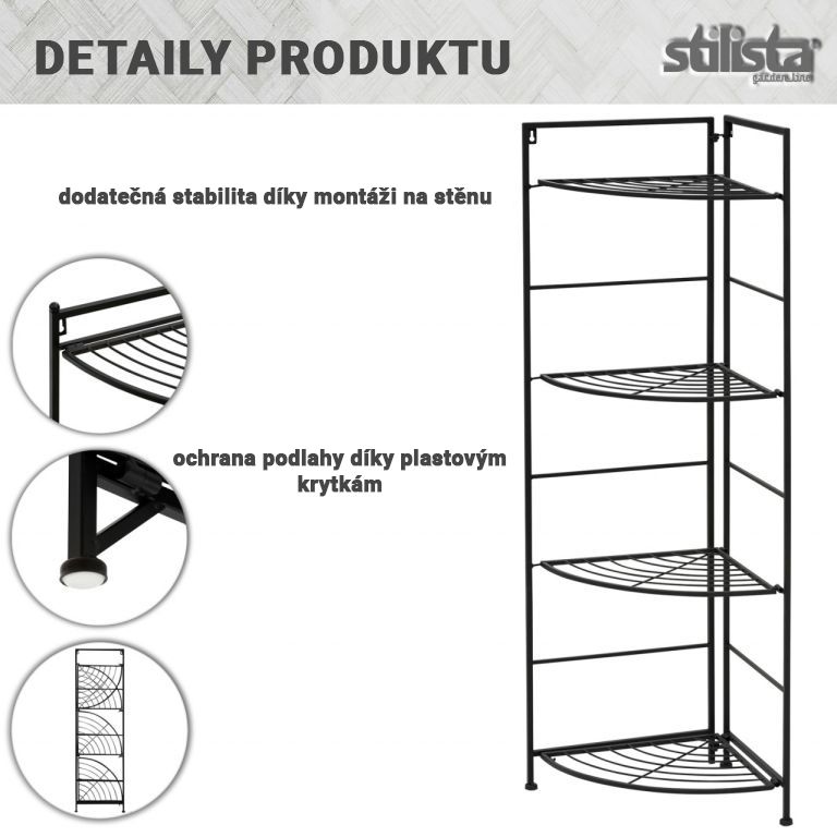 Náš rohový stojan na kvety je vyrobený z odolného práškovo lakovaného oceľového rámu. Klasický dizajn políc sa štýlovo hodí do každého interiéru aj exteriéru. Police pre rastliny ponúkajú dostatok priestoru pre rastliny rôznych veľkostí a je možné ich použiť aj ako odkladacie police napr. pre dekoratívne prvky.
