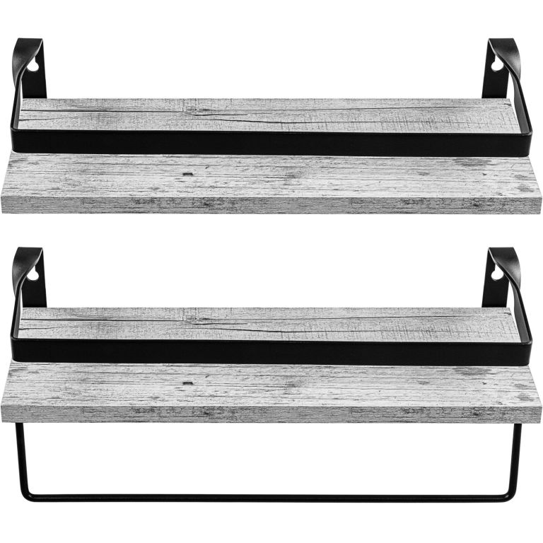 Sada 2 kusov nástenných políc dizajnovej rady "VOLATO DUO" je skutočnou perlou vo Vašom domove. Nielen vďaka rustikálnemu vzhľadu dreva v atraktívnom prevedení, ale aj vďaka dekoratívnemu kovaniu. Kovový rám umožňuje nielen stabilné pripevnenie na stenu, ale zároveň zabraňuje prípadnému pádu predmetov z police. Súčasťou dodávky je tiež ďalší voliteľný kovový držiak, ktorý uvítate na zavesenie utierky alebo ako držiak kuchynských pomôcok.