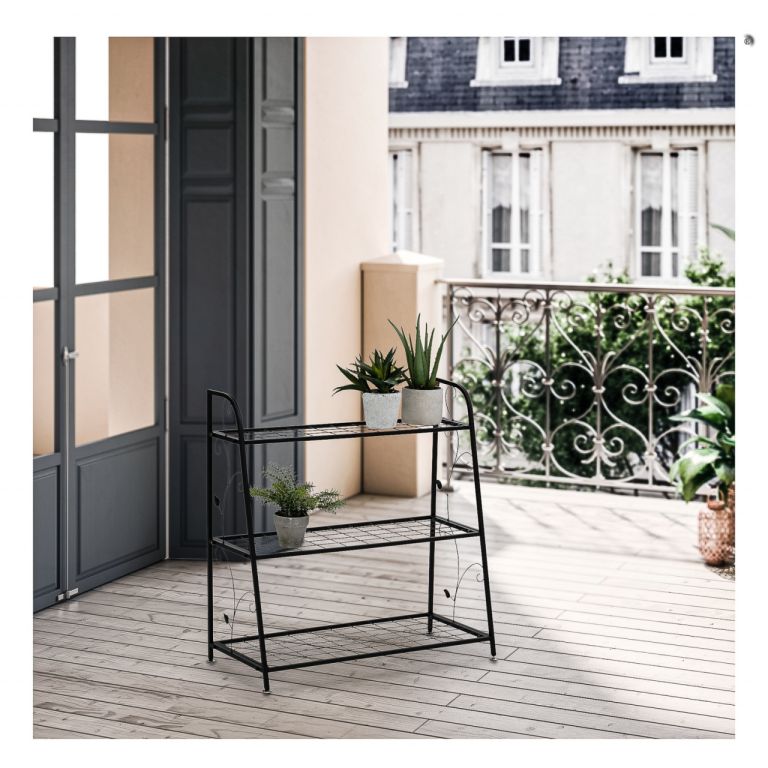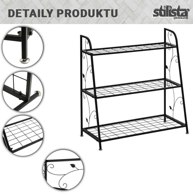 Náš stojan na kvety je vyrobený z odolného práškovo lakovaného oceľového rámu. Klasický dizajn políc sa štýlovo hodí do každého interiéru aj exteriéru. Police pre rastliny ponúkajú dostatok priestoru pre rastliny rôznych veľkostí a je možné ich použiť aj ako odkladacie police napr. pre dekoratívne prvky.