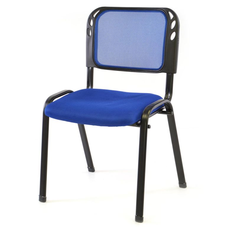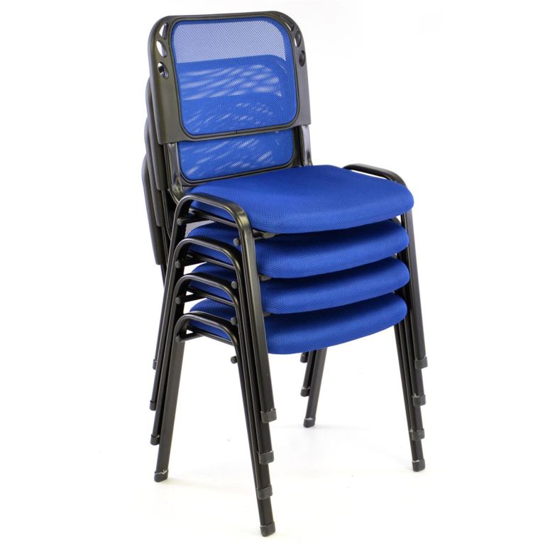 Stohovateľná kancelárska stolička s modrým polstrovaným sedadlom