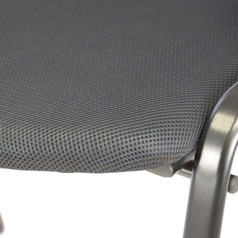 Stohovateľná kancelárska stolička so sivým polstrovaným sedadlom.