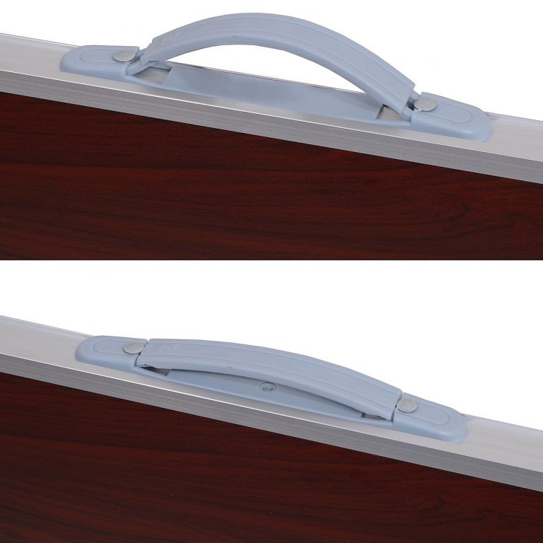 Kvôli svojim rozmerom 80 x 60 x 4 cm a hmotnosti 3,8 kg v zloženom stave, je stôl skladný a môžete ho pohodlne prenášať vďaka prakticky umiestnenému madlu na boku dosky.