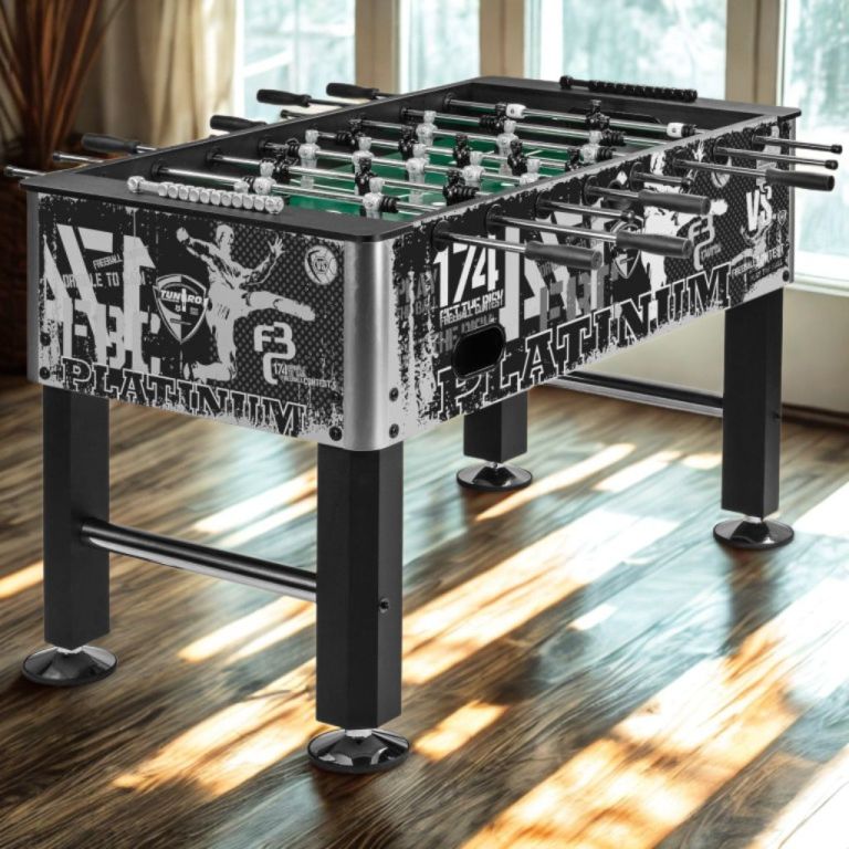 Stolný futbal TUNIRO BASIC má hmotnosť 75 kg a je vybavený výškovo nastaviteľnými pogumovanými nohami. Rukoväte sú perfektne ergonomické a protišmykové aj pre potiaca sa ruku. Hracie tyče značky LONHART sú bezpečné a nedochádza tak k nechcenému priškripnutiu prsta medzi rukoväť a hranu futbalu. Kvôli vylúčeniu preliačiny hracieho poľa bolo už 24 mm hrubé hracie pole zosilnené prostredníctvom železného kríža zo spodnej strany. Okrúhle kovové tanierové nohy sú vnútri duté, vzhľadom k malej opornej ploche majú veľmi dobrú stabilitu.
