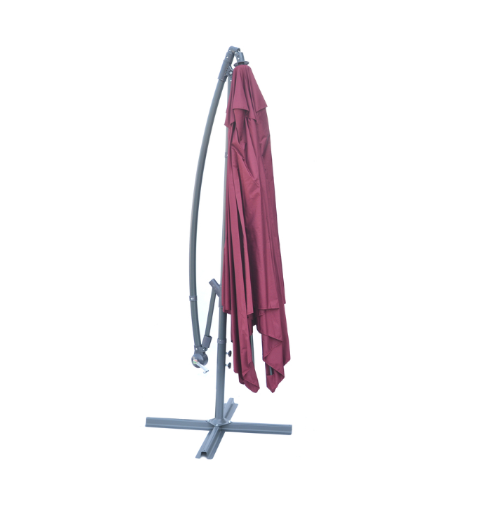 Slnečník zaistí príjemné posedenie počas slnečných dní. Možnosť nastavenia uhla tienenia, bez strapcov, otváranie kľučkou. S krížovým podstavcom. Farba: bordó.