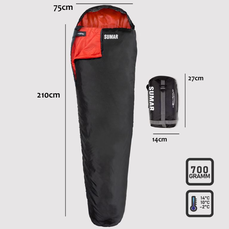 Spací vak je extrémne univerzálny či už kempujete, cestujete s batohom, turistiku alebo trekking, tento spací vak je perfektnou voľbou po celý rok.Vďaka nízkej hmotnosti a praktickému kompresnému vaku je možné spací vak ľahko skladovať a prepravovať.Vďaka vodeodpudivým vlastnostiam spacieho vaku múmie zostanete pohodlne v suchu aj za mierneho dažďa alebo mokra.Mäkký polyesterový materiál a príjemná kapucňa so sťahovacou šnúrkou zaisťujú pohodlné nosenie a pokojný spánok počas vašich outdoorových dobrodružstiev.Spací vak je vyrobený z odolných materiálov a je navrhnutý tak, aby vydržal. Je to spoľahlivý spoločník, ktorý odolá aj drsným dobrodružstvám a dlhodobo ponúka optimálny výkon.