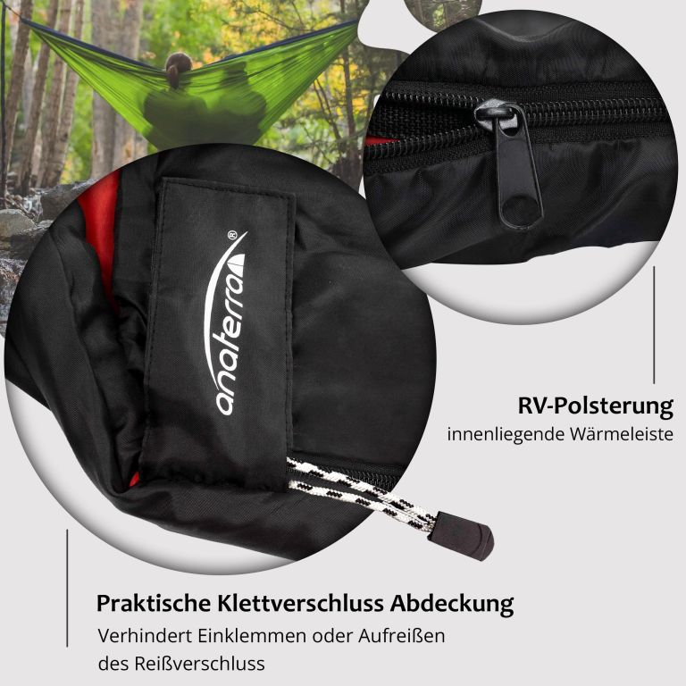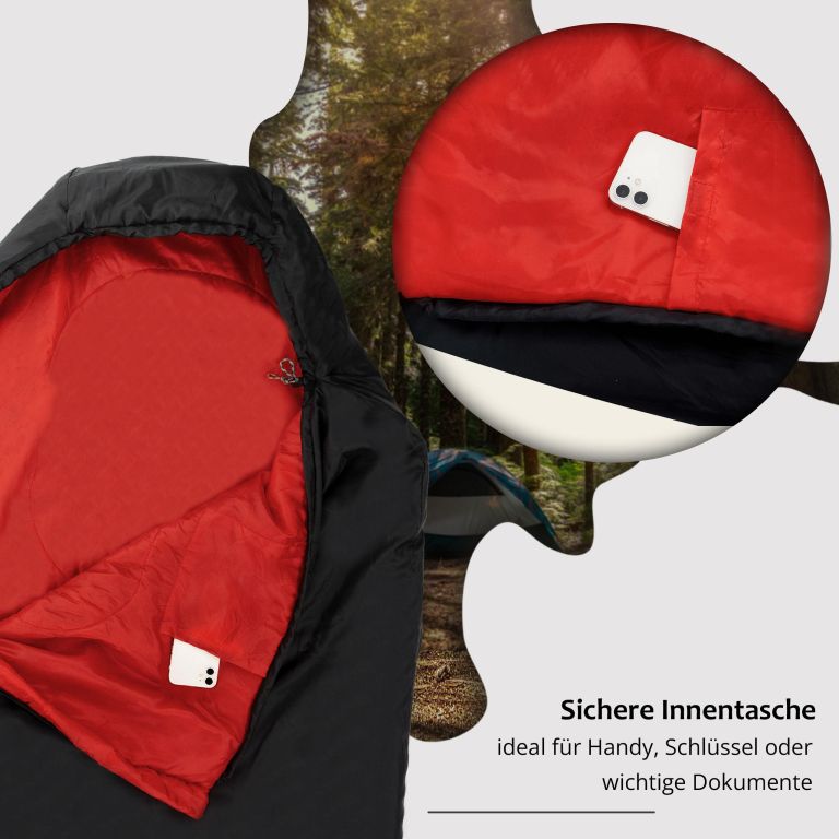 S veľkorysými rozmermi 210 cm x 75 cm ponúka tento múmiový spací vak dostatok priestoru pre osoby vysoké až 1,9 m, čo umožňuje pohodlný spánok. Dvojcestný zips umožňuje ľahký prístup z oboch strán a dokonca umožňuje spárovanie s ďalším spacím vakom. Vďaka pásku proti zovretiu sa vyhnete zaseknutiu zipsu a budete si užívať bezproblémové používanie. Útulná kapucňa so sťahovacou šnúrkou zaisťuje teplo a pohodlie, zatiaľ čo praktické vrecko na dokumenty udrží vaše nevyhnutnosti po ruke.