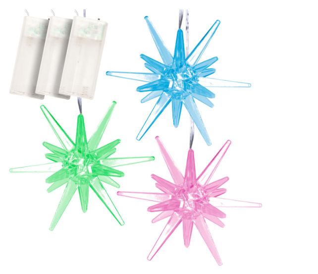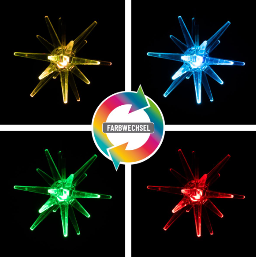 LED svietiace hviezdy, ktoré menia farbu (červená/biela/zelená/modrá), a trojrozmerný tvar vytvárajú sviatočnú atmosféru.