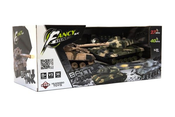 Zahrajte si na tankovú bitku. Každý tank vydáva zvuky, strieľa, otočná veža sa otáča o 360 stupňov, svieti. Kto stratí všetky "životy", prehral. Hlaveň vydáva zvuky. Každý tank pracuje na inej frekvencii (27 MHz/40 MHz). Vyrobené z kvalitného a odolného plastu. Mierka 1:32. Batérie 2x 4.8 V AA (tanky), 2x 9 V (diaľkové ovládanie) sú súčasťou balenia. Vrhni sa do vojnovej bitky! Ovládaj tank a hľadaj svojho nepriateľa! Vzdialenosť diaľkového ovládača do 15 metrov. Vzdialenosť medzi tankami pre tankovú bitku do 4 metrov. Prvá doba nabíjania batérie je 8 hodín. Každé ďalšie nabíjanie bude 3-4 hodiny do plného nabitia batérie. Jeden plne nabitý dobíjací pack vydrží 10-15 minút hry. Rozmery balenia 50 x 20 x 23 cm. Vhodné pre deti od 8 rokov.