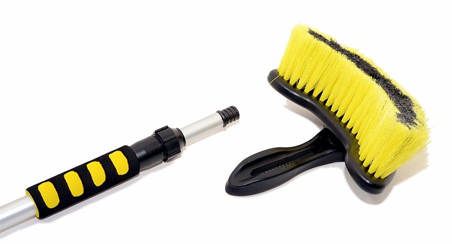 Teleskopická kefa Truck s prietokovou umývacou kefou a teleskopickou konštrukciou z hliníka pre pohodlnú prácu.