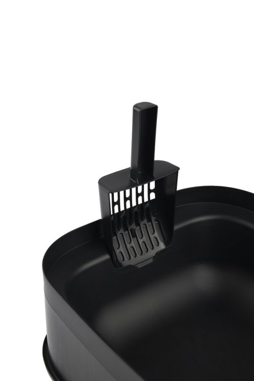 Zobraziť podrobnejší popisModerná toaleta pre mačky s magnetickými dvierkami a filtrom, vyrobená z recyklovaného plastu.