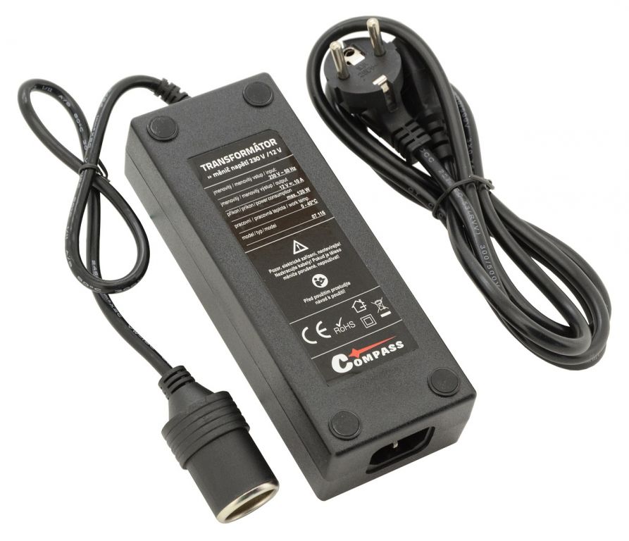 Tento vysoko výkonný 10 A menič (transformátor s usmerňovačom) je určený na univerzálne použitie, kedy je potrebné pripojiť zariadenie s výkonom až 120 W s napájaním pomocou zástrčky autozapaľovača 12 V= k sieti s napätím 230 V.