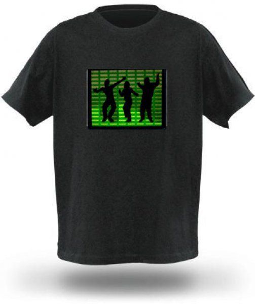 Tričko reaguje na zvuk z okolí, svítí intensivním neonovým světlem, tak jako ekvalizér...