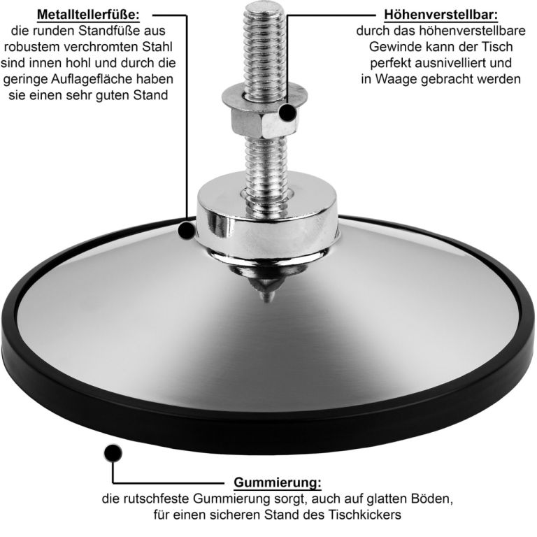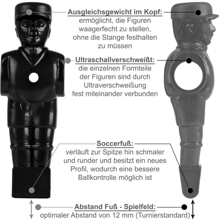 Značka TUNIRO je známa od svojho založenia v roku 2005 profesionálnymi domácimi futbalmi a najvyššou radosťou z hry a rovnako tak pre vynikajúcu cenu v pomere k výkonu. Pri vývoji všetkých komponentov je venovaná pozornosť dodržiavaniu štandardov turnaja s ohľadom na bezpečnosť a hrateľnosť. Tiež bolo zapracované know-how vysoko postavených hráčov futbalu Bundesligy. Okrem toho sú všetky stolné futbaly TUNIRO zodpovedajúcim spôsobom certifikované podľa BTFV (Bayerischer Tischfußballverband). Model "PRO" z radu TUNIRO má hmotnosť 110 kg a je vybavený výškovo nastaviteľnými pogumovanými nohami. Rukoväte sú perfektne ergonomické a rukoväte sú protišmykové aj pre potiacu sa ruku. Hracie tyče sú bezpečné a nedochádza tu k nechcenému priškripnutiu prsta medzi rukoväť a hranu futbalu. Na vylúčenie pretlačenia hracieho poľa, boli už 24 mm hrubé hracie polia navyše zosilnené pomocou železného kríža zo spodnej strany. Okrúhle kovové tanierové nohy sú vo vnútri duté, vzhľadom na malú opornú plochu majú veľmi dobrú stabilitu.
