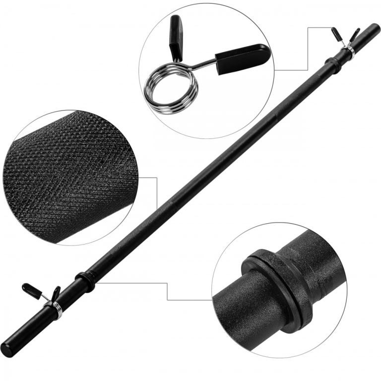 Tyč na obojručnú činku 160 cm, čierna, pružinový uzáver