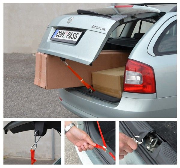 Popruh na zadné dvere na zaistenie piatych dverí vozidla, pokiaľ ich nie je možné zavrieť (napr. kvôli presahujúcemu nákladu).