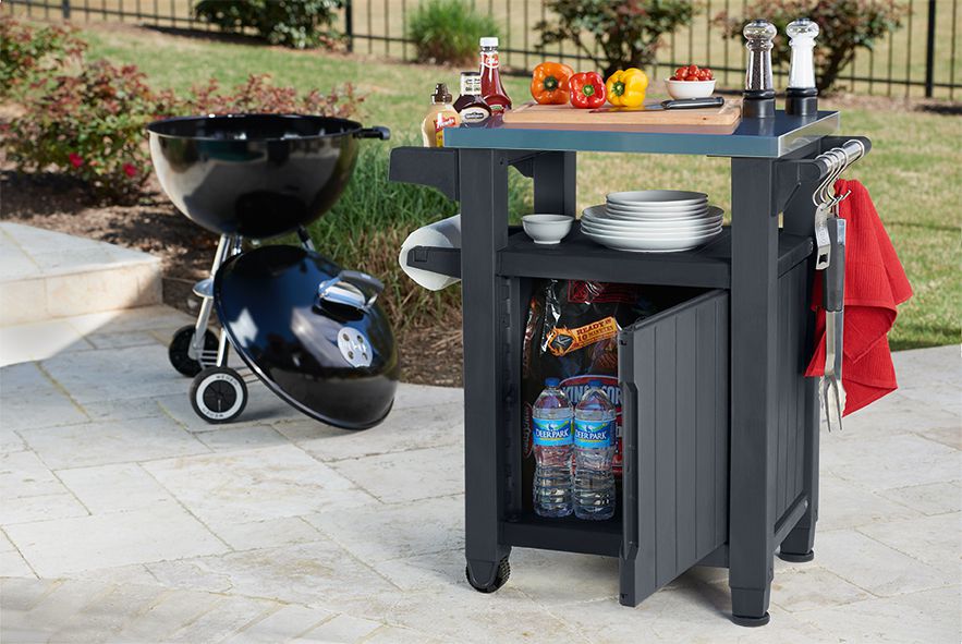 Multifunkčný úložný stôl - ideálny pri grilovaní, sadení rastlín apod. Všetko máte ihneď k dispozícii. Ľahká montáž + kovová doska.