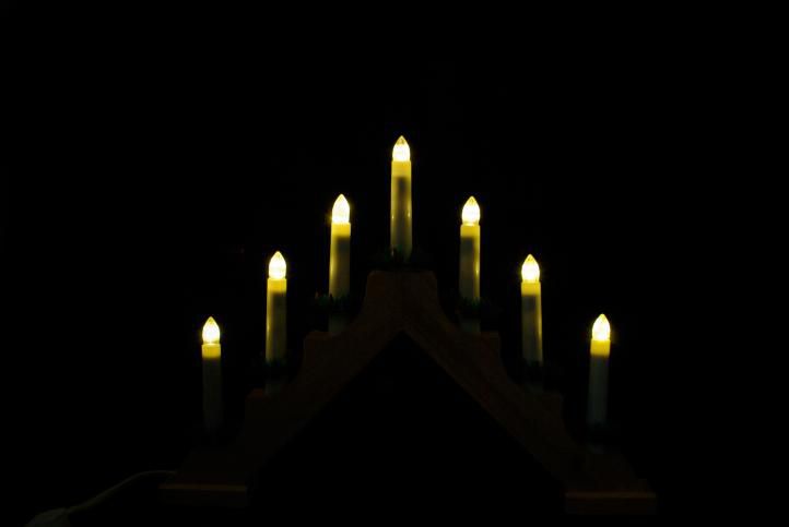 Vianočná dekorácia - drevený svietnik, 7 LED diód