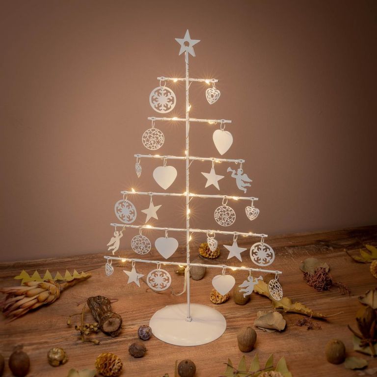 Vianočný kovový dekoračný strom - biely, 25 LED, teple biela