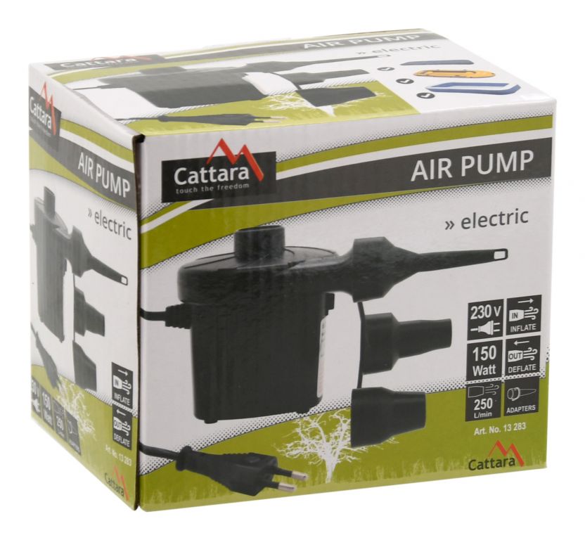 Pumpu je možné použiť na nafukovanie, ale aj na vyfukovanie. Spolu so zariadením je dodávaný aj adaptér, respektíve multiadaptér s tromi koncovkami pre rôzne nafukovacie otvory. Príkon pumpy 150 W je zaistený napájaním na 230 V, zaisťujúcim prietokom vzduchu o objeme 250 l / min.