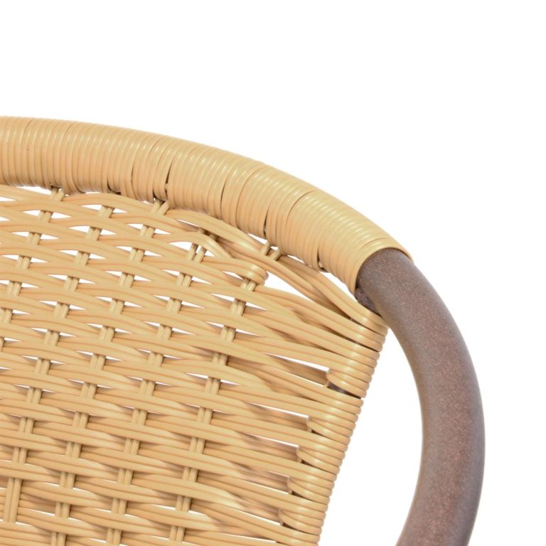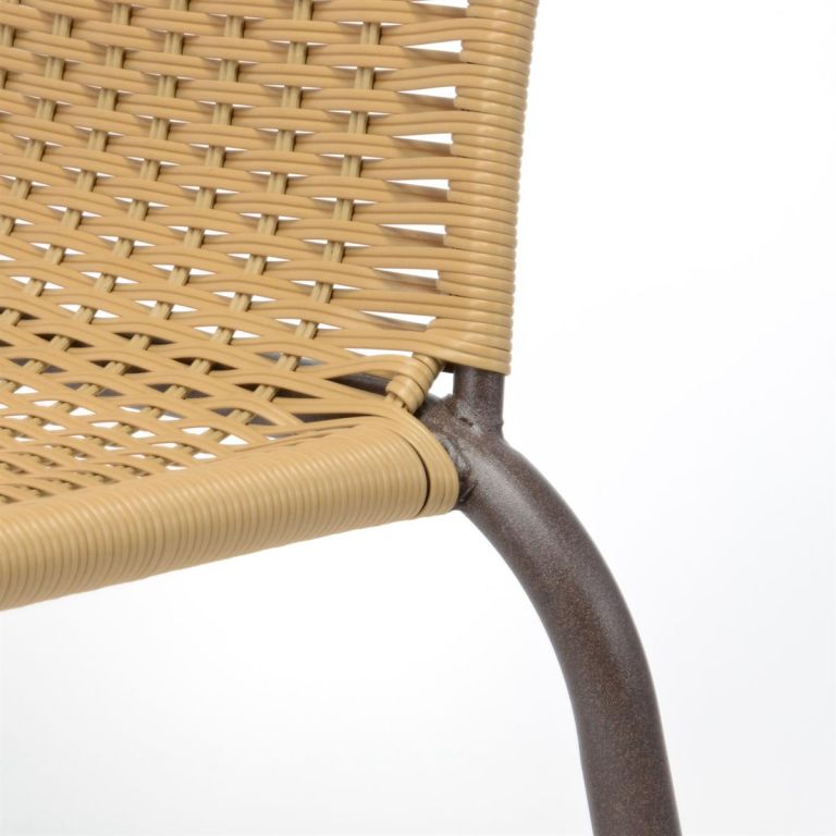 Použité materiály sú nenáročné na údržbu, odolné voči vplyvu počasia a nevyžadujú špeciálne prostriedky na ošetrenie. Ľahká, ale napriek tomu robustná stohovateľná stolička s komfortnou ratanovou sedacou plochou je veľmi pohodlná. Oceľová konštrukcia je ošetrená práškovým povrchom a nohy sú vybavené gumou. Špeciálne zosilnený poťah stoličky.