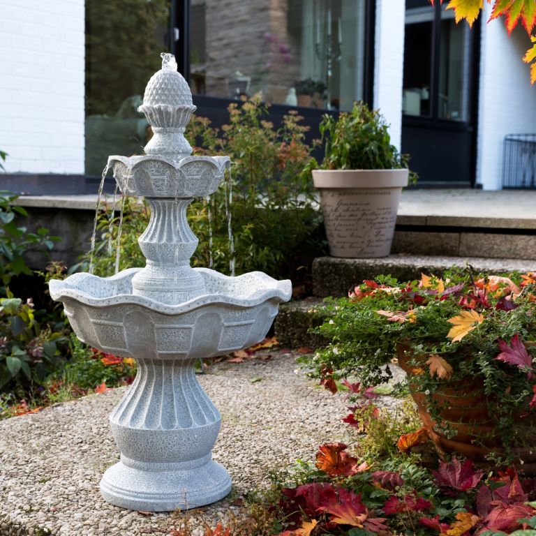 Funkčná záhradná fontána z odolného polyresinu bude elegantným doplnkom vašej záhrady, ktorej dodá slávnostnú atmosféru. Polyresin je vysoko odolný proti poveternostným podmienkam, ale vezmite prosím na vedomie, že fontána musí byť cez zimu dobre uschovaná.