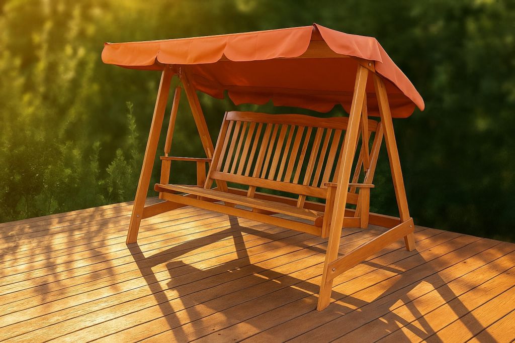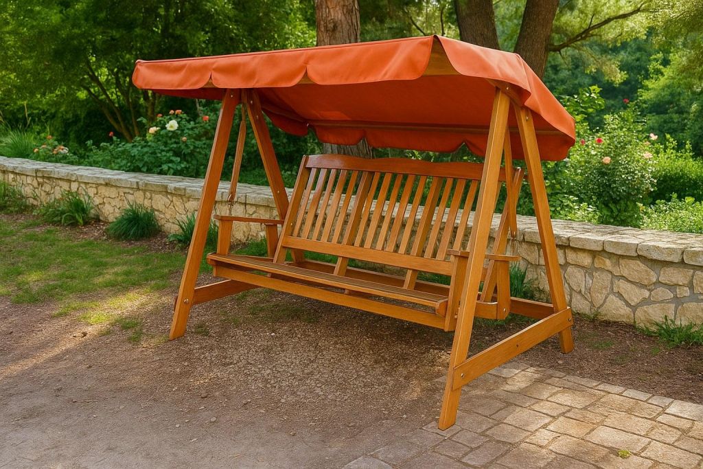 Záhradná hojdačka z lakovaného borovicového dreva.