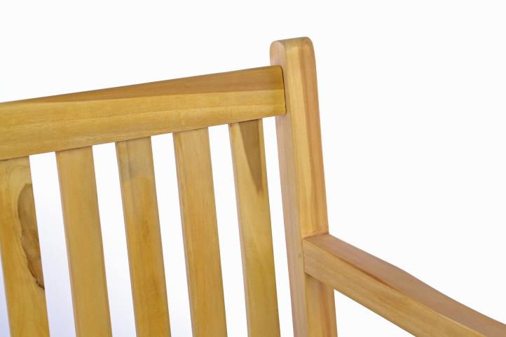 Záhradný nábytok z dreva prepožičia Vašej záhrade prirodzenú, rustikálnu atmosféru a je pravým lákadlom v každej záhrade. Teakové drevo je najobľúbenejší druh dreva pri záhradnom nábytku. Je veľmi robustné a odolné voči vplyvom počasia, a preto veľmi vhodné na použitie v exteriéri. Pre dlhodobú radosť z Vašej lavice odporúčame pravidelnú starostlivosť s použitím teakového oleja. Tým nielen predĺžite životnosť Vášho teakového nábytku, ale aj zvýraznite žilkovanie. Použité drevo pochádza z kontrolovaného pestovania drevín.