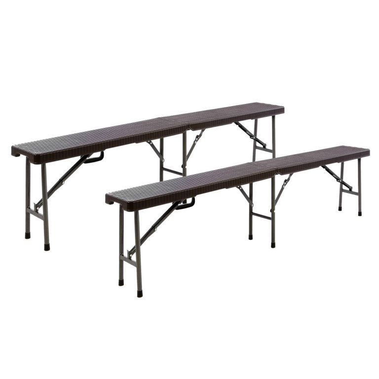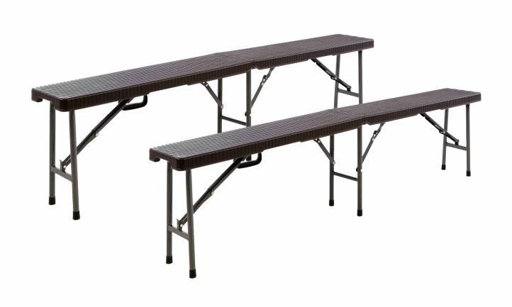 Hnedé sklopné lavice zaujmú ušľachtilým designom v ratanovom vzhľade.