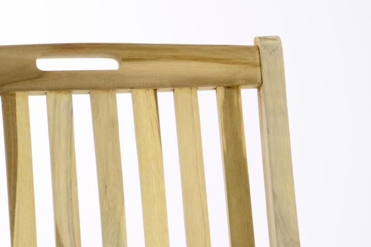 Teakové drevo je robustné tropické drevo odolné proti poveternostným vplyvom, ktoré je vďaka svojim vlastnostiam mimoriadne vhodné pre vonkajšie použitie. Ak chcete zachovať krásu záhradných stoličiek, odporúčame drevo pravidelne ošetriť teakovým olejom. Neupravené teakové drevo nakoniec získa známu striebornosivú patinu.