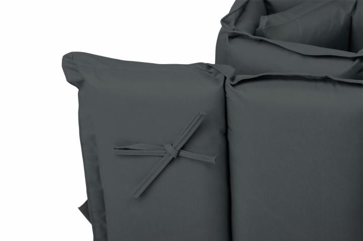 Vankúš je pripevnený 2 pásikmi na podložke a podľa potreby ho môžete sklopiť dozadu. Dvomi upevňovacími pásikmi na zadnej strane podložky upevníte podložku k lehátku.