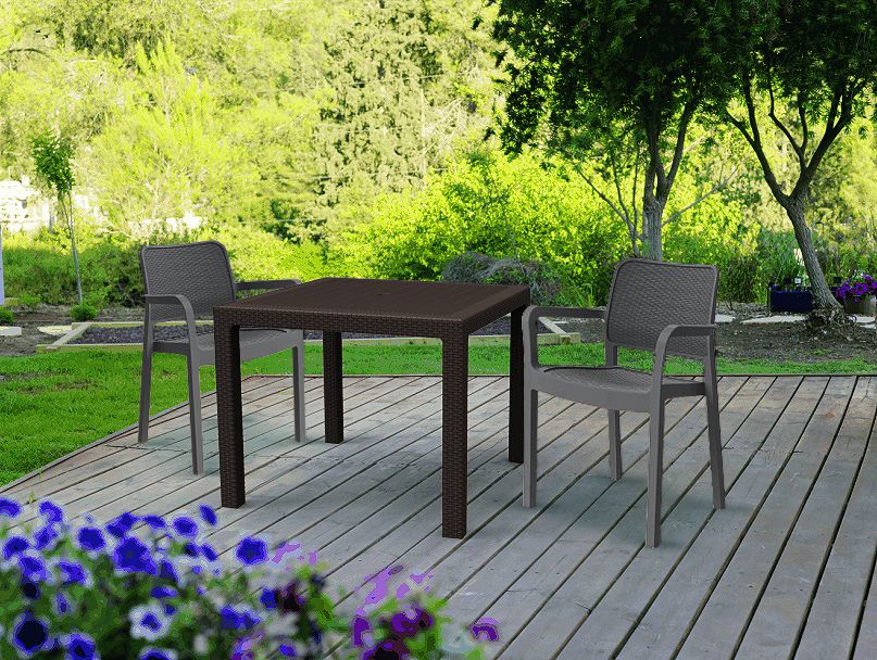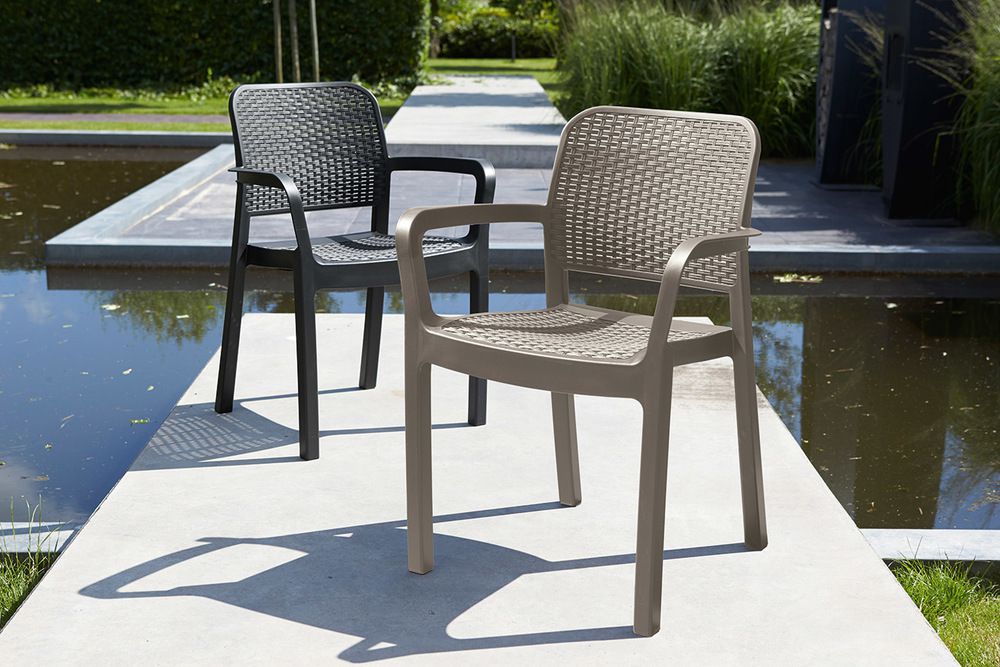 Záhradné plastové kreslo vo farbe capuccino. Moderný design, ľahká údržba, vysoká odolnosť.