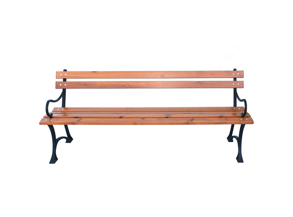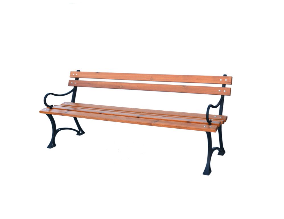 Velmi stabilní a odolná lavička jak do parků,tak i zahrad. Hliníková konstrukce v černé barvě. Sedací a opěrná plocha je osazena dřevěnými hranoly.
