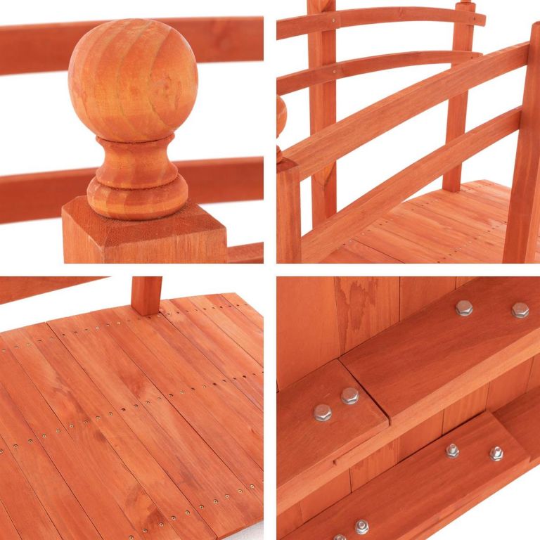 Dekoratívny záhradný mostík z masívneho mäkkého dreva bude spestrením na Vašej záhrade. Stabilné zábradlia dodávajú mostíku pekný dizajn a podporujú jeho pevnosť. Ideálny na premostenie potoka, kvetinového záhonu alebo len pre ozdobenie Vašej zelenej plochy.