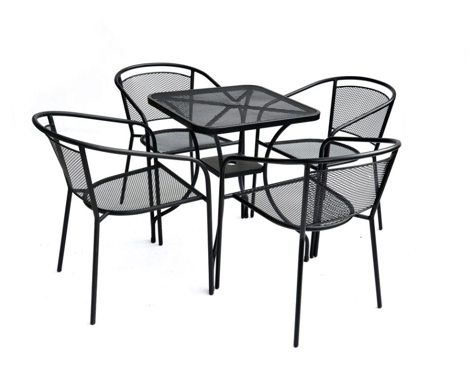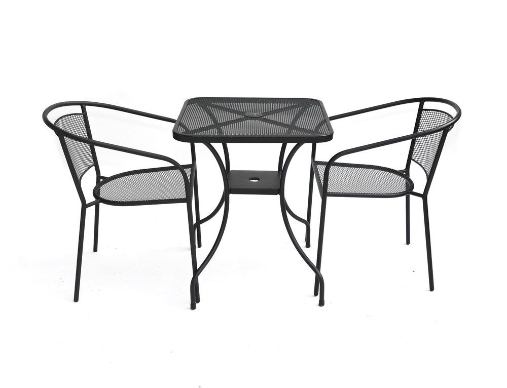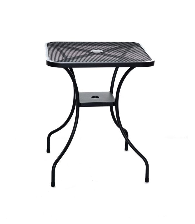 Kovový záhradný stôl s drôtenou vrchnou doskou štvorcového tvaru. Výborne sa kombinuje so všetkými typmi kovového záhradného nábytku. Je ľahko udržiavateľný a umývateľný.