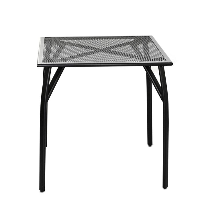 Kovový záhradný stôl s drôtenou vrchnou doskou štvorcového tvaru. Výborne sa kombinuje so všetkými typmi kovového záhradného nábytku. Je ľahko udržiavateľný a umývateľný.