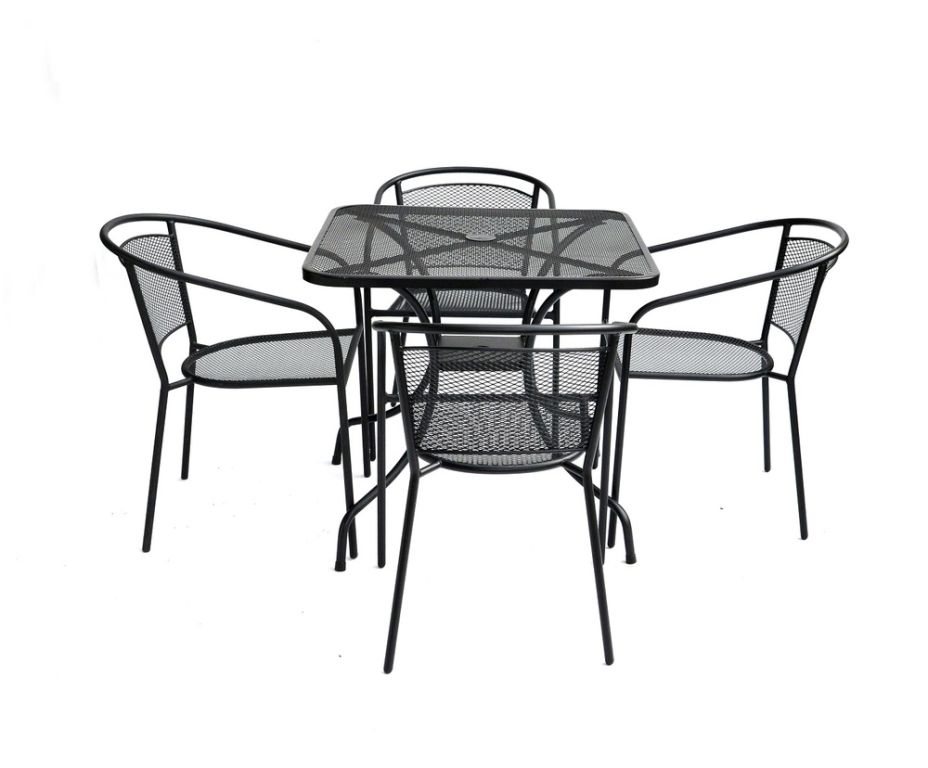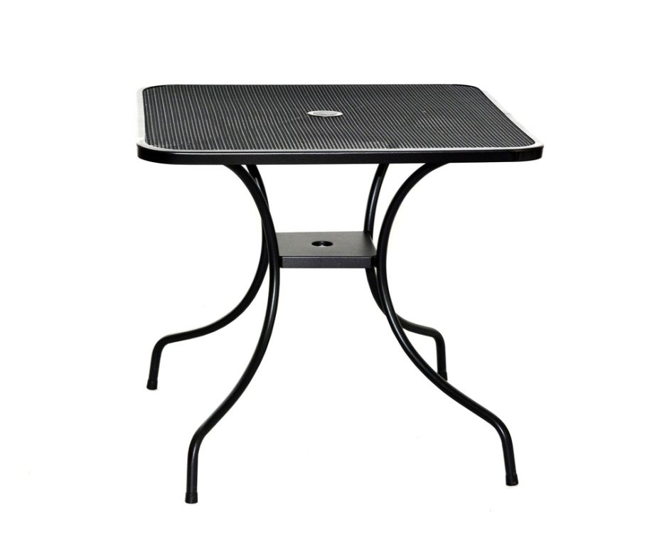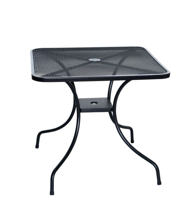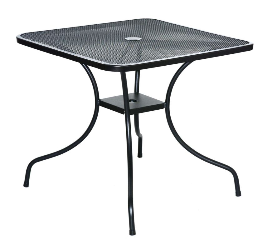 Kovový záhradný stôl s drôtenou vrchnou doskou štvorcového tvaru. Výborne sa kombinuje so všetkými typmi kovového záhradného nábytku. Je ľahko udržiavateľný a umývateľný.