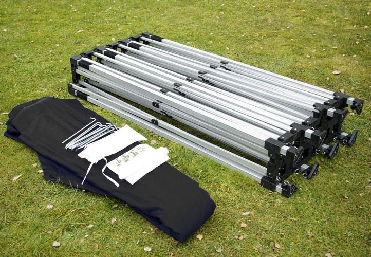 Tento nepremokavý záhradný párty stan zložíte aj rozložíte vďaka jeho nožnicovej konštrukcii behom niekoľkých minút (funguje na rovnakom princípe ako dáždnik). Stan Vám v horúcich letných mesiacoch poskytne vytúžený tieň a vďaka tomu, že je vyrobený z nepremokavého materiálu, ochráni Vás aj pred dažďom, rovnako ako pred vetrom a prievanom.