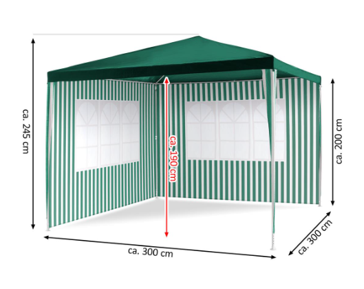 Záhradný párty stan - zelený 3 x 3 m + 2 bočné steny