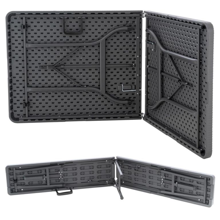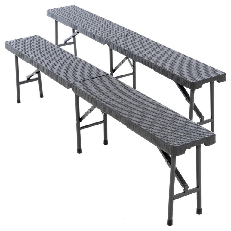Táto sivá skladacia sada vyniká svojím elegantným dizajnom v ratanovom vzhľade. Stôl a lavice môžu byť postavené behom okamihu. Vďaka integrovaným úchytom sa celá sada ľahko prepravuje. Ak už sadu nepotrebujete, môžete ju jednoducho zložiť a úsporne uskladniť. Oceľový rám zaisťuje stabilitu. Stolík je navyše na spodnej strane vybavený bezpečnostnými kolíkmi pre väčšiu stabilitu. Materiál sa ľahko udržiava a ľahko sa čistí. Pevná sada je teda vhodná pre vnútorné i vonkajšie použitie. Nohy sú vybavené gumovými chráničmi a Vašej oslave už nič nebráni.