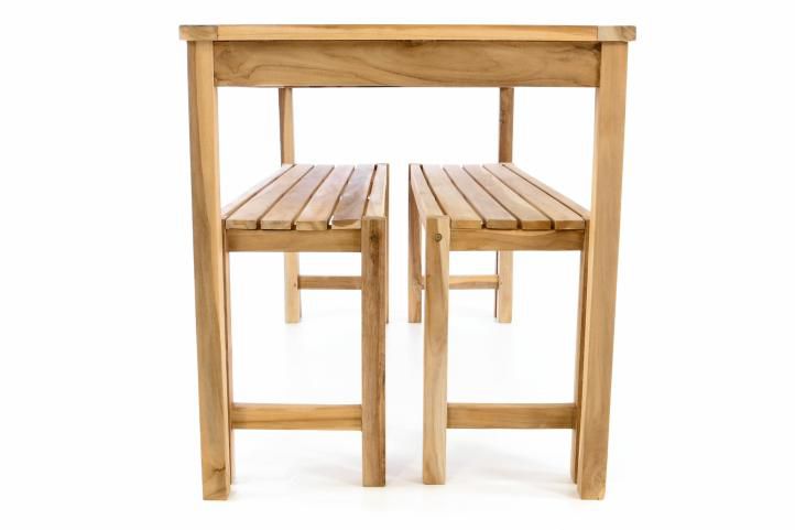 Záhradný set lavíc a stola DIVERO - neošetrené teakové drevo - 135 cm