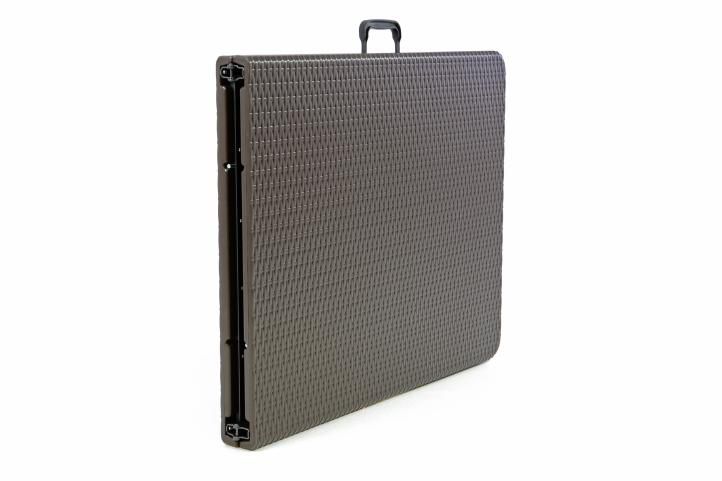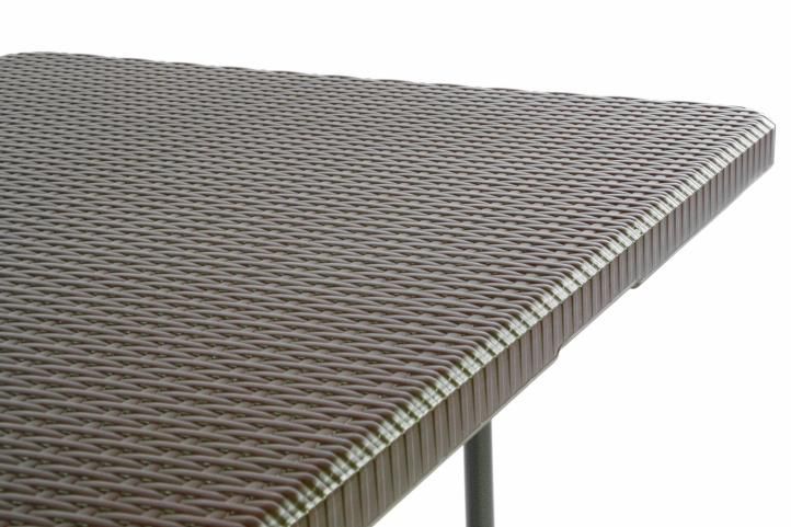 Hnedý skladací stôl Vás zaujme svojím ušľachtilým designom v ratanovom vzhľade. Stôl je postavený počas okamžiku. Pre väčšiu stabilitu sú na spodnej strane umiestnené bezpečnostné čapy. Stôl si môžete vziať so sebou na akúkoľvek párty - integrované držadlo umožňuje jednoduchý transport.