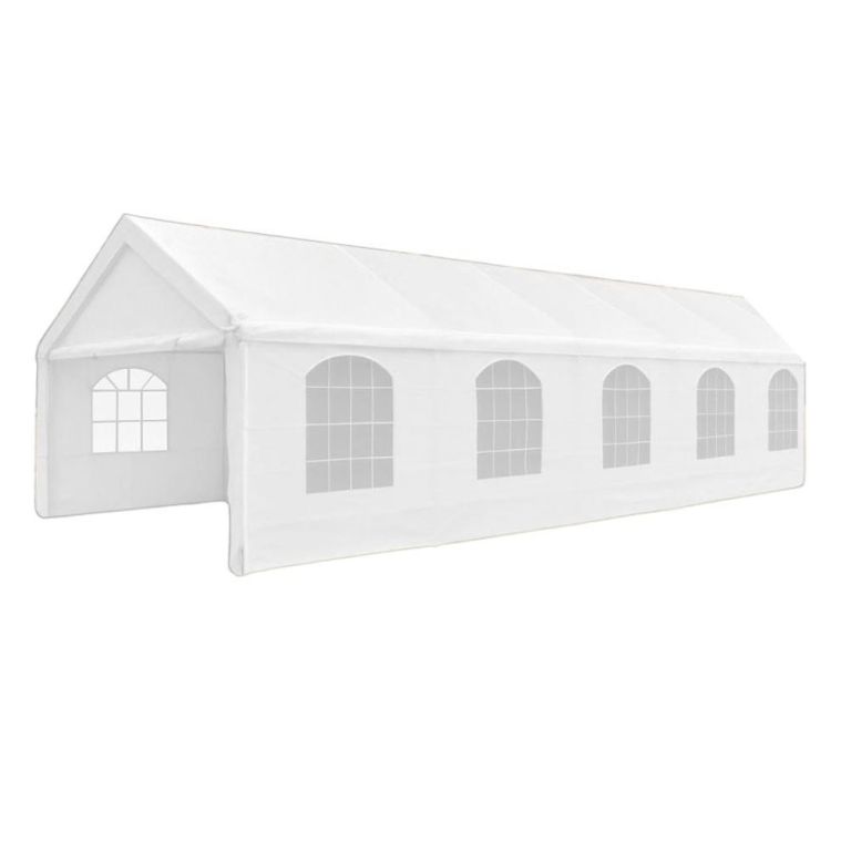 Tento elegantný záhradný stan je vyrobený z nepremokavého polyethylenu a vďaka svojim rozmerom je ideálny pre väčšie záhradné oslavy a ďalšie akcie, ktoré chcete usporiadať pod šírym nebom. Ochráni Vás pred nečakanou dažďovou prehánkou aj prudkým slnečným žiarením. V neskorších večerných hodinách Vám poskytne príjemné útočisko pred chladom a prievanom. Je dodávaný vrátane bočných stien, ktoré slúžia k celkovému uzavretiu stanu.
