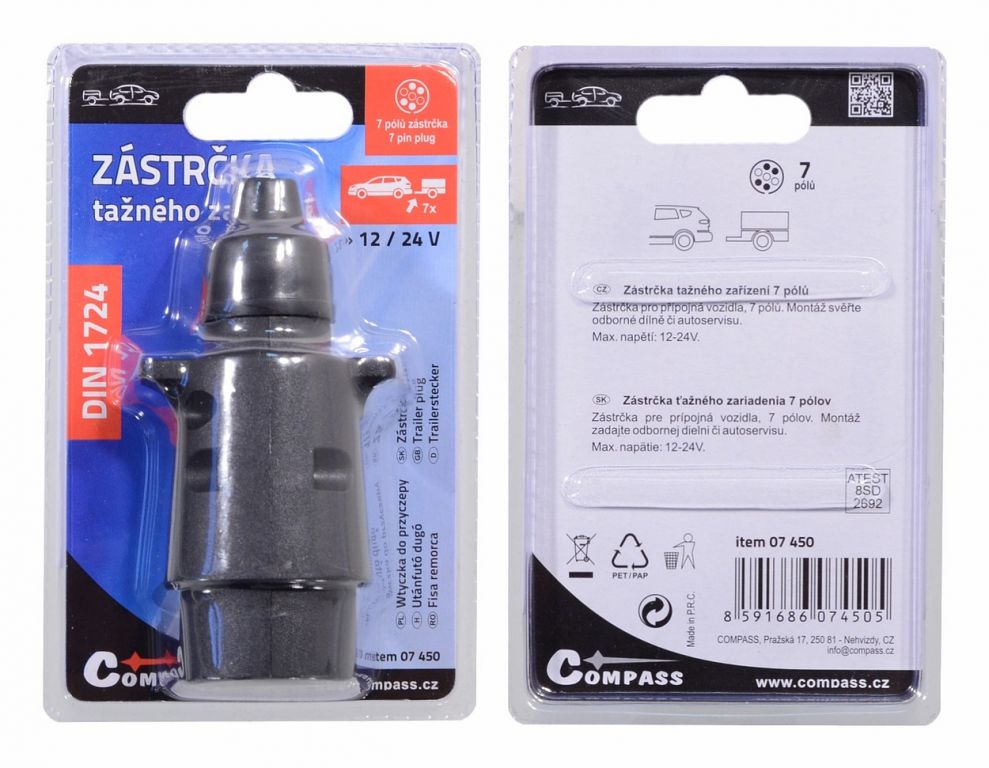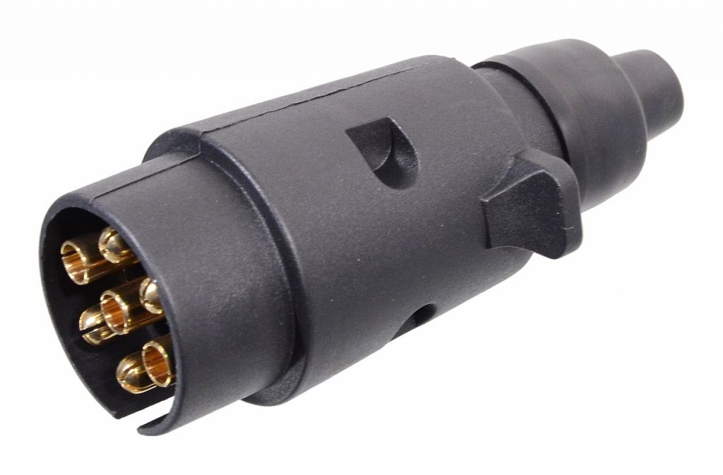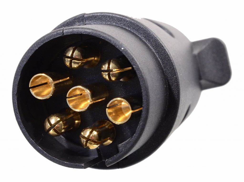 Zásuvka pre prípojné vozidlá, sedem pólové. Max. napätie 12 V 24 V je vhodná do karavanu. Zásuvka je yrobená z odolného plastu, podľa normy DIN 1724.