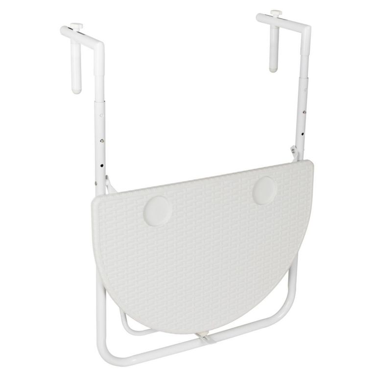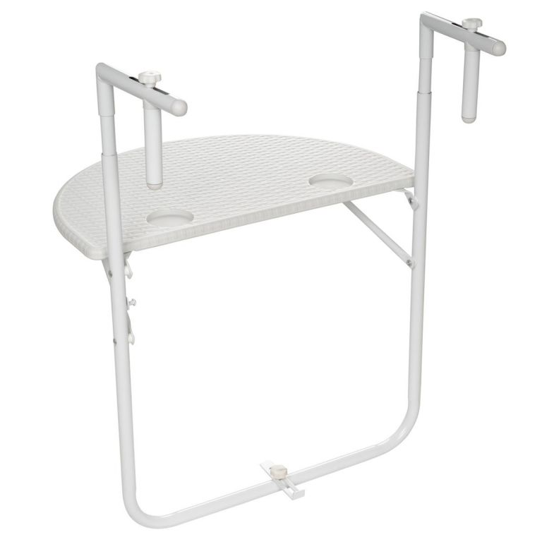 Vďaka nášmu závesnému stolíku, ktorý môžete sklopiť, ušetríte miesto. Použitý materiál zaisťuje, že je stolík odolný a nevyžaduje špeciálnu údržbu, môže preto zostať vonku za každého počasia. Či už ako konferenčný stolík alebo ako stolík na rastliny - vyzerá vždy dobre. Výška stola je nastaviteľná a závisí na výške zábradlia.