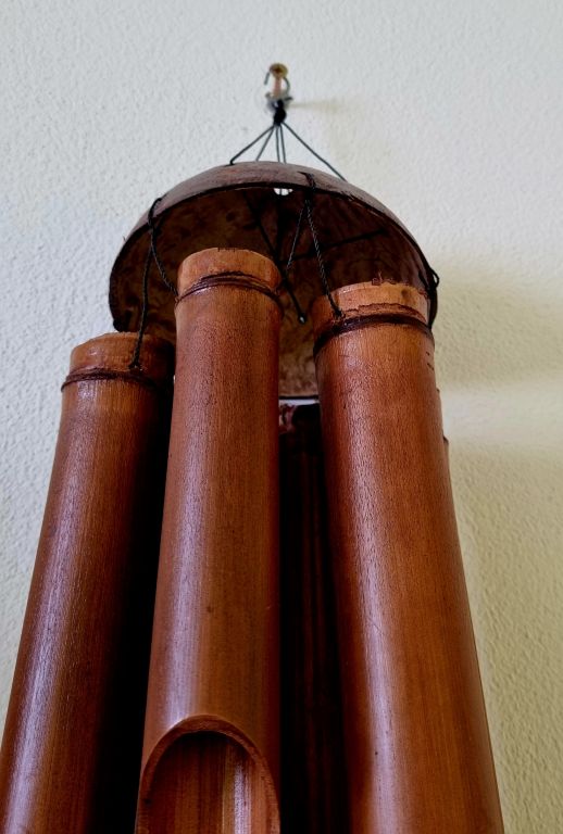 Bambusová zvonkohra, prírodný materiál. Praskliny na bambusových rúrkach nie sú chybou výrobku a nemajú negatívny vplyv na celkovú funkčnosť výrobku.